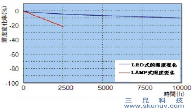 减少耗材成本,LED的使用时间一般可以达到25000-30000小时,而传统LAMP方式照射机约2000小时左右就需要更换灯管,LED-UV采用电缆输出,无光纤导光,LED可以为您减少设备耗材成本,提高设备利用率。