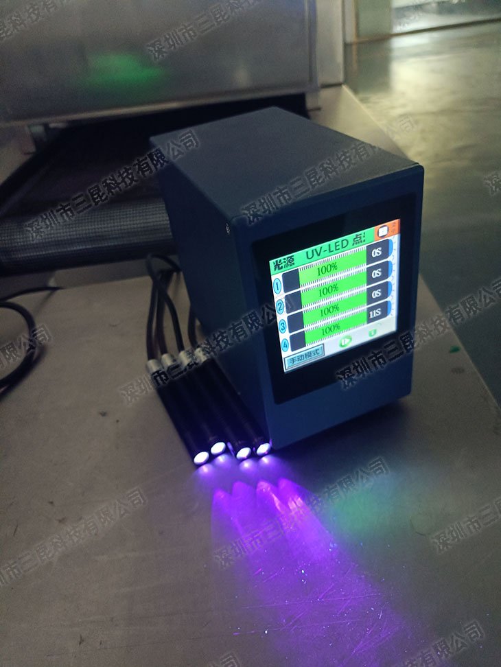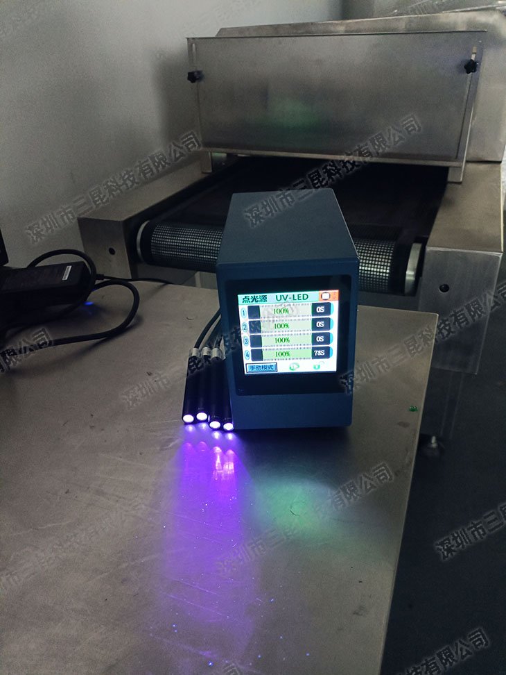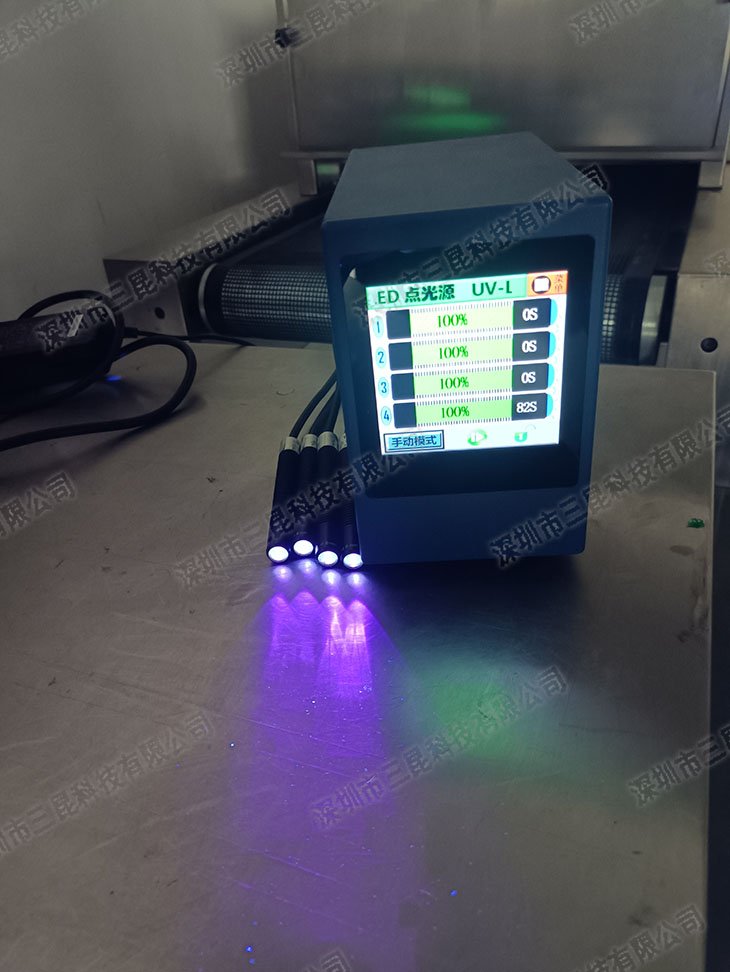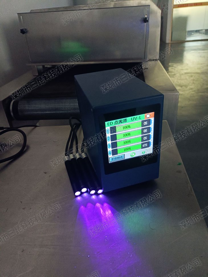 本设备采用365-405nm多波段UV-LED光源,支持4个独立照射头同步操作,光强达7000mW/cm2,适配胶水、油墨等快速固化。独特风扇散热设计确保光功率